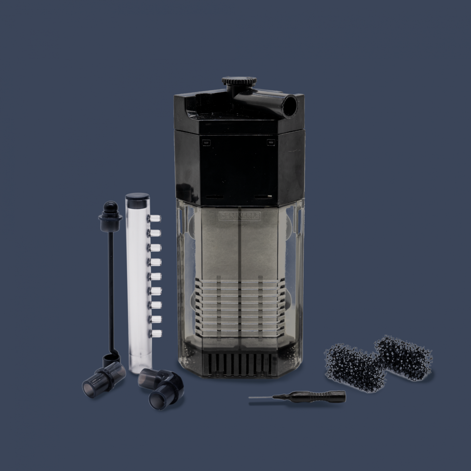 Filter kan staand of liggend worden gebruiktCompact hoekfilter voor zoetwateraquaria
