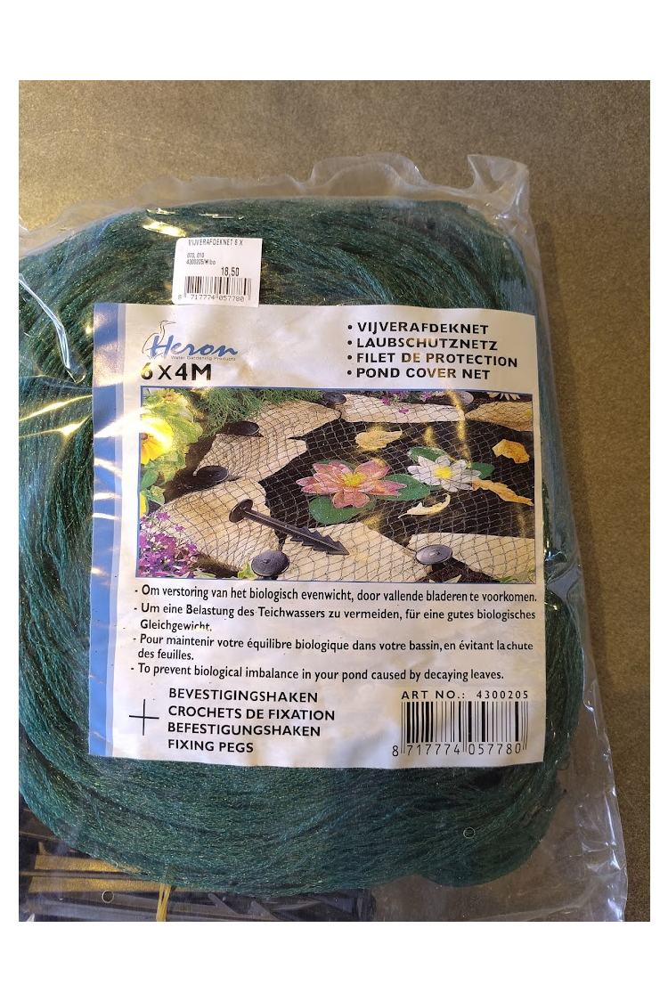 Afdeknet, kleur groeninclusief bevestigings haken.afmeting: 6 x 4 meter